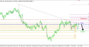 AUDUSD H1 | การกลับตัวลงจากแนวต้าน Fibonacci 50%