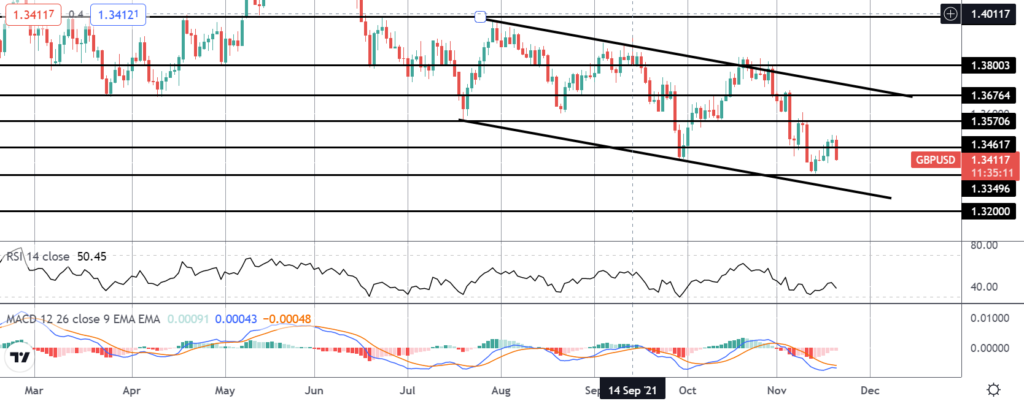 ตลอดสัปดาห์นี้เงินปอนด์ได้รับปัจจัยบวกจากสถิติการจ้างงานในประเทศ ซึ่งมีอัตราการว่างงานลดลงต่ำสุดนับตั้งแต่ปี 60 ประกอบกับการขยายตัวของเงินเฟ้อในเดือน ต.ค. ที่ทำสถิติสูงสุดในรอบ 10 ปี และสถิติการค้าปลีกเดือน ต.ค. ที่ขยายตัวถึง 0.8%MoM จากที่มีการประเมินไว้เพียง 0.5%MoM (ในเดือนก่อนหน้าอยู่ที่ -0.2%MoM)