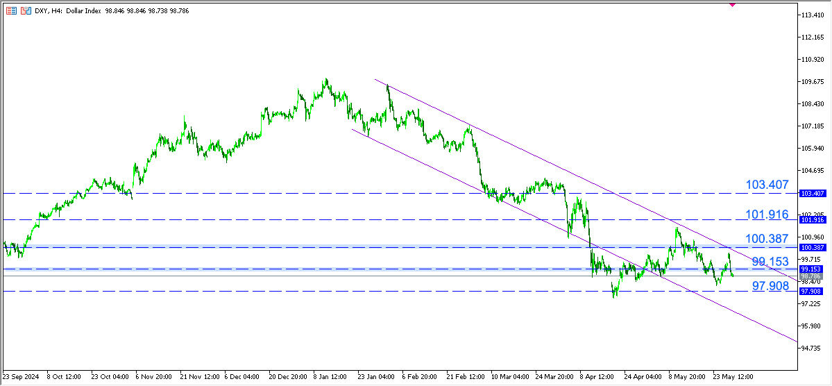 ส่วนกราฟ DXY กำลังทดสอบแนวต้านสำคัญที่ 100.38 ถ้าผ่านได้ มีโอกาสไปต่อที่ 101.91 และ 103.40
