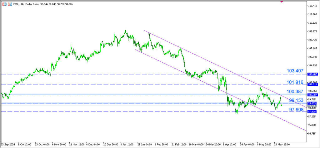 ส่วนกราฟ DXY กำลังทดสอบแนวต้านสำคัญที่ 100.38 ถ้าผ่านได้ มีโอกาสไปต่อที่ 101.91 และ 103.40