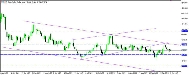ดอลลาร์สหรัฐฯ อ่อนค่าหนักหลังรัฐบาลเข้าสู่ภาวะชัตดาวน์ครั้งแรกตั้งแต่ปี 2019 ทำให้พนักงานกว่า 750,000 คนถูกพักงาน สูญเสียราว 400 ล้านดอลลาร์ต่อวัน ความไม่แน่นอนเพิ่มขึ้นเมื่อ NFP ถูกเลื่อนเผยแพร่ ขณะที่ตลาดจับตา ADP หากออกมาอ่อนแออาจกดดันแรงขายต่อ ด้านเทคนิค DXY หลุด 98.24 เสี่ยงลงทดสอบ 96.63 และอาจร่วงต่อถึง 94.85 ตามแนวโน้มขาลง
