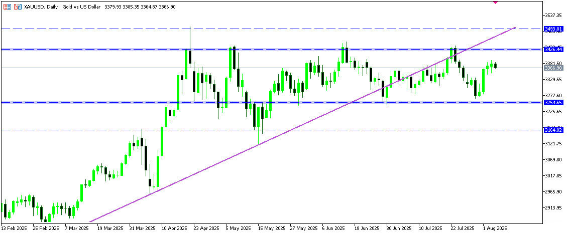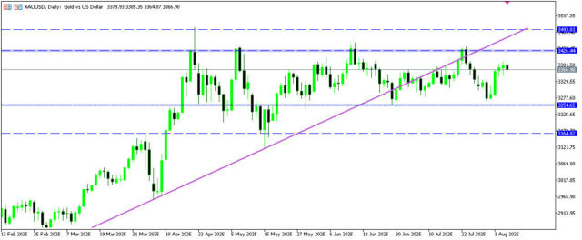 ราคาทองยังเคลื่อนไหวในกรอบเดิมแม้มีแรงหนุนจากข้อมูลจ้างงานสหรัฐที่อ่อนแอ ซึ่งกระตุ้นคาดการณ์เฟดอาจลดดอกเบี้ยในเดือนกันยายน พร้อมกับแรงซื้อจากความกังวลเรื่องสงครามการค้า หลังสหรัฐกลับมาใช้มาตรการภาษีและทรัมป์ขู่เล่นงานจีนเพิ่ม ด้านเทคนิค ราคาทองชะลอที่แนวต้านสำคัญ 3,426.44 แต่หากผ่านได้ มีโอกาสเบรกขึ้นรอบใหม่ โดยแนวโน้มยังเป็นบวกตราบใดที่ไม่หลุดแนวรับเดิมที่ 3,254.65