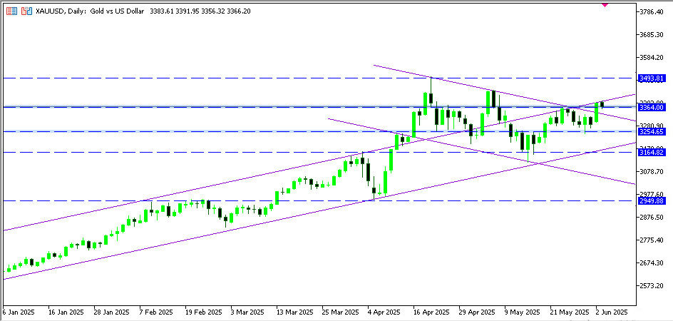 ราคาทองคำปรับตัวสูงขึ้นหลังความต้องการสินทรัพย์ปลอดภัยกลับมาเพิ่มขึ้นอีกครั้ง จากความกังวลการเจรจาการค้าสหรัฐ-จีนที่หยุดชะงัก รวมถึงทรัมป์ขู่เพิ่มภาษีเหล็ก-อลูมิเนียมเป็น 50% ในเดือนมิถุนายน ขณะที่ความตึงเครียดระหว่างรัสเซียและยูเครนกลับมาร้อนแรงหลังรัสเซียถูกโจมตีด้วยโดรน นักลงทุนกังวลว่ารัสเซียอาจถอนตัวจากการเจรจาสันติภาพ สถานการณ์เหล่านี้ช่วยหนุนราคาทองให้ปรับขึ้นต่อเนื่อง โดยมุมมองทางเทคนิคชี้ว่า หากราคาทะลุแนวต้าน 3,364 ได้ มีโอกาสกลับไปทดสอบจุดสูงสุดของปีนี้