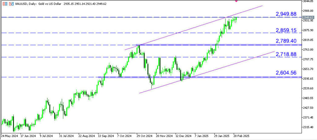 มุมมองทางเทคนิค ราคาทองชะลอตัวที่แนวต้าน 2,949.88 โมเมนตัมอ่อนลง เสี่ยงปรับฐาน แต่แนวโน้มขาขึ้นยังอยู่ หากราคายืนเหนือแนวรับ 2,859.15 และ 2,789.40
