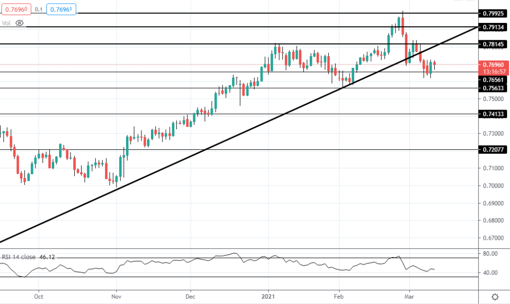 AUD/USD ปรับฐานลงหลังการประชุม RBA ประจำเดือนมีนาคม