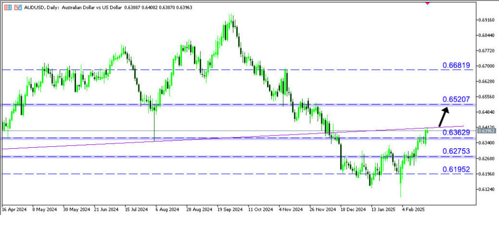 ดอลลาร์ออสเตรเลียแข็งค่าหลังตัวเลขจ้างงานออกมาดีกว่าคาด แม้อัตราว่างงานเพิ่มขึ้นเป็น 4.1% แต่การจ้างงานพุ่งขึ้น 44K ตำแหน่ง RBA แม้ลดดอกเบี้ย 0.25% แต่ยืนยันไม่ผ่อนคลายเพิ่มในระยะใกล้ ด้าน USD อ่อนค่าต่อเนื่องจากความไม่แน่นอนทางการค้า หนุนให้ AUD แข็งแกร่งขึ้น ทางเทคนิค หากยืนเหนือ 0.6275 แนวโน้มขาขึ้นยังคงอยู่ โดยมีเป้าหมายถัดไปที่ 0.6520