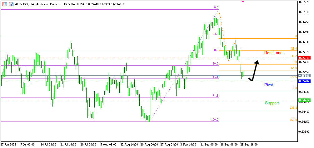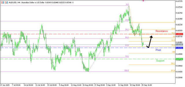 แต่ถ้าหลุดต่ำกว่า Pivot อาจร่วงต่อไปยังแนวรับ 0.6471 ใกล้โซน Fibo 78.6% สถานการณ์นี้เป็นจุดชี้ชะตาของการรีบาวด์หรือการร่วงต่อ