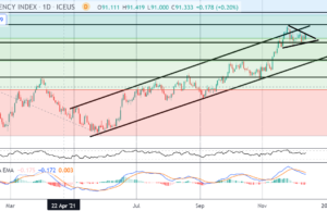 ดอลลาร์สหรัฐฯ มีทิศทางแข็งค่าชัดเจน หลังจบการประชุม FOMC ประจำเดือน พ.ย. เมื่อเย็นวานนี้ ซึ่งมีการยืนยันเรื่องมาตรการลด QE โดย Fed มีมุมมองว่าต้องปรับนโยบายให้เป็นเชิงรุกมากขึ้น หากมีความจำเป็นก็จะปรับเปลี่ยนเงื่อนไขการรับซื้อสินทรัพย์ และเพิ่มอัตราดอกเบี้ยเร็วขึ้น ถ้าเงินเฟ้อยังขยายตัวมากกว่าระดับคาดการณ์