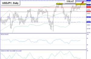 แม้ค่า ADX จะยังไม่บ่งบอกว่ากำลังเกิด trend ในตลาด แต่ราคาสามารถเอาชนะแนวต้าน 110.10 แล้วแข็งค่าต่อไปที่ upper Bollinger band บริเวณ 110.47 อย่างไรก็ตาม ยังมีโอกาสน้อยที่จะสามารถแข็งค่าทะลุแนวต้านใหม่