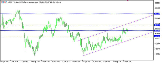 USDJPY เผชิญแรงขายหลังรมว.คลังสหรัฐฯ เรียกร้องให้ BOJ ดำเนินนโยบายการเงินอย่างรอบคอบ สวนทางกับกระแสผ่อนคลายภายใต้รัฐบาลใหม่ของนายกฯ ทาคาอิจิ ส่งผลให้เงินเยนแข็งค่าและ USDJPY อ่อนตัว แม้บรรยากาศการค้าสหรัฐฯ–จีนเป็นบวก ขณะเดียวกัน ตลาดคาดเฟดจะลดดอกเบี้ยในสัปดาห์นี้ ส่วน BOJ ยังไม่เปลี่ยนแปลงนโยบาย ทำให้เกิดความแตกต่างทางนโยบายชัดเจน ทางเทคนิค หากราคาหลุดแนวรับ 152 อาจลงต่อถึง 149.30 แต่หากยืนได้มีโอกาสดีดกลับสู่ 154.74