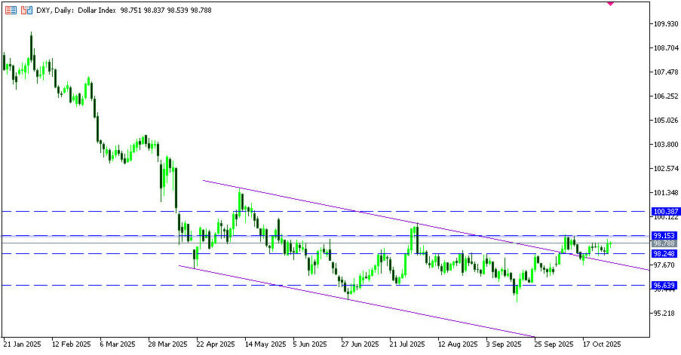 ดอลลาร์สหรัฐแข็งค่าหลังเฟดลดดอกเบี้ย 0.25% ตามคาด แต่พาวเวลล์ระบุว่ายังไม่แน่ใจว่าจะลดอีกในเดือนธันวาคม ทำให้นักลงทุนลดคาดการณ์เหลือราว 70% จาก 95% ก่อนหน้า ขณะเฟดยังขาดข้อมูลแรงงานเพราะการปิดหน่วยงานรัฐ ด้านข่าวดีจากข้อตกลงการค้าสหรัฐฯ–จีนเรื่องภาษีและแร่หายากหนุนดอลลาร์ต่อ ส่วนดัชนี DXY ทดสอบแนวต้าน 99.15 เป้าหมายถัดไป 100.38
