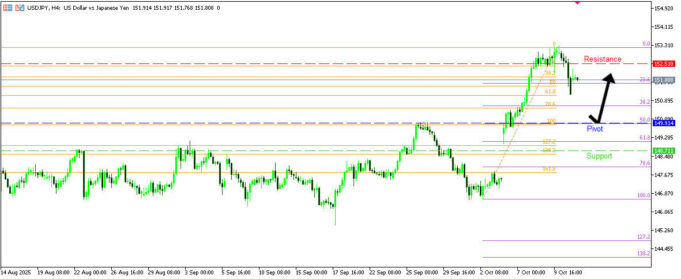 วิเคราะห์ USDJPY บนกราฟ H4 มีแนวโน้มการดีดตัวขึ้นจากแนวรับ ราคากำลังอ่อนตัวลงสู่บริเวณ Pivot ที่ 149.91 ซึ่งเป็นแนวรับซ้อน (Overlap Support) สอดคล้องกับระดับ Fibonacci Retracement 50% และ Fibonacci Projection 100% หากราคาดีดตัวจากโซนนี้ มีโอกาสปรับขึ้นไปยังแนวต้านแรกที่ 152.51 ซึ่งเป็นแนวต้านจากการย่อตัว (Pullback Resistance) แต่หากราคาหลุดต่ำกว่า 149.91 อาจปรับลงต่อถึงแนวรับถัดไปที่ 148.71 ซึ่งเป็นแนวรับจากการย่อตัวเช่นกัน