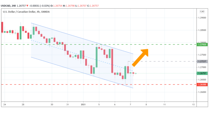 USDCAD formed the Channel down pattern with timeframe 4 Hours.In the short term, the price may rise up to test the resistance level 1.2792.Take profit: near the resistance level 1.2792.Stop loss: should below the support level 1.2630.