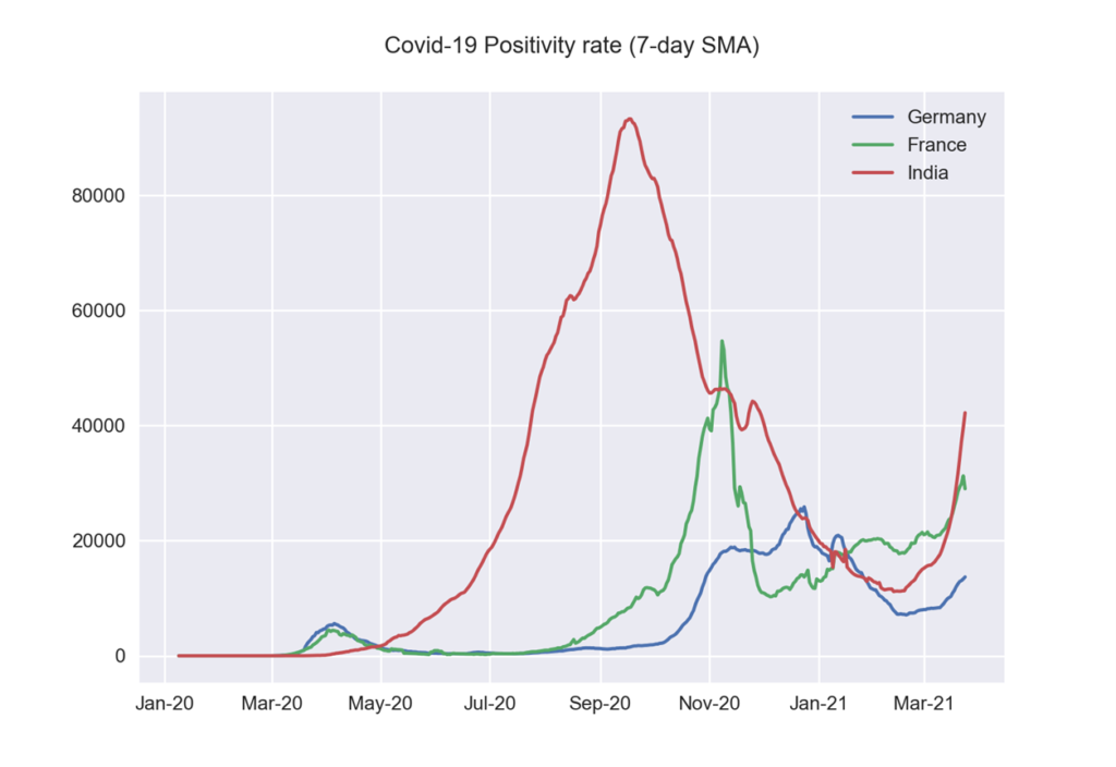 หุ้นสหรัฐฯ ปิดตลาดเป็นลบเมื่อวานนี้ เพราะผลกระทบจากการแพร่ระบาด COVID-19ระลอก 3 ซึ่งเป็นเชื้อกลายพันธุ์และมีผู้ป่วยเพิ่มขึ้นทั่วโลก โดยเฉพาะในเยอรมนี ฝรั่งเศส และอินเดีย ที่มีสถิติผู้ติดเชื้อเพิ่มขึ้นสูงสุดในรอบหลายเดือน