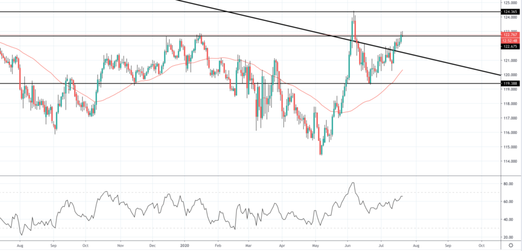Technical Views: EUR/JPY (ราคากลาง 122.67)
