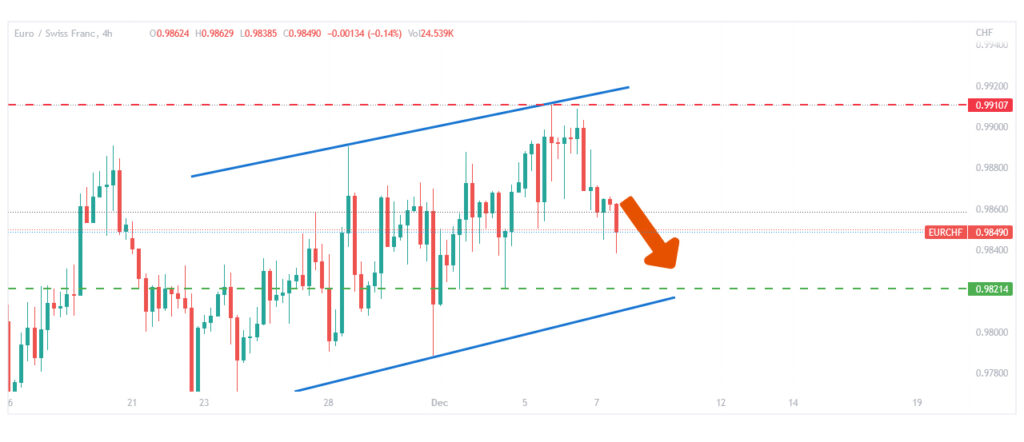 EURCHF คู่นี้เป็น pattern แบบ Channel Up โดยรูปแบบราคาจาก Time frame 4 ชั่วโมง