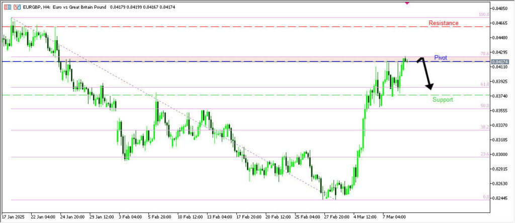 EURGBP H4 | ร่วงจากแนวต้าน 78.6% Fibo