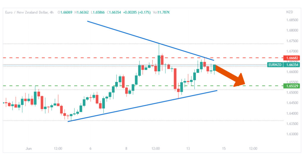 EURNZD คู่นี้เป็น pattern แบบ Triangle โดยรูปแบบราคาจาก Time frame 4 ชั่วโมง