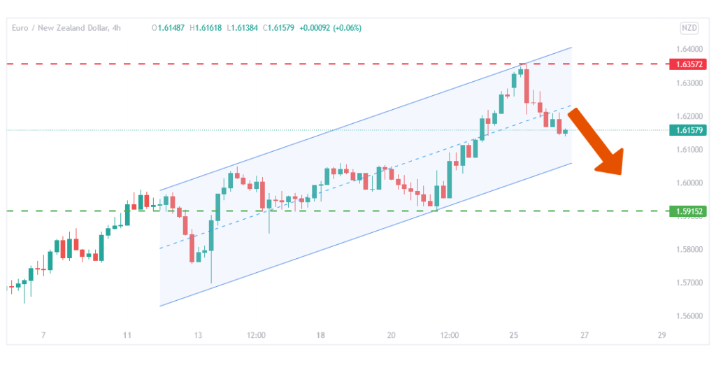 EURNZD คู่นี้เป็น pattern แบบ Channel Up โดยรูปแบบราคาจาก Time frame 4 ชั่วโมง