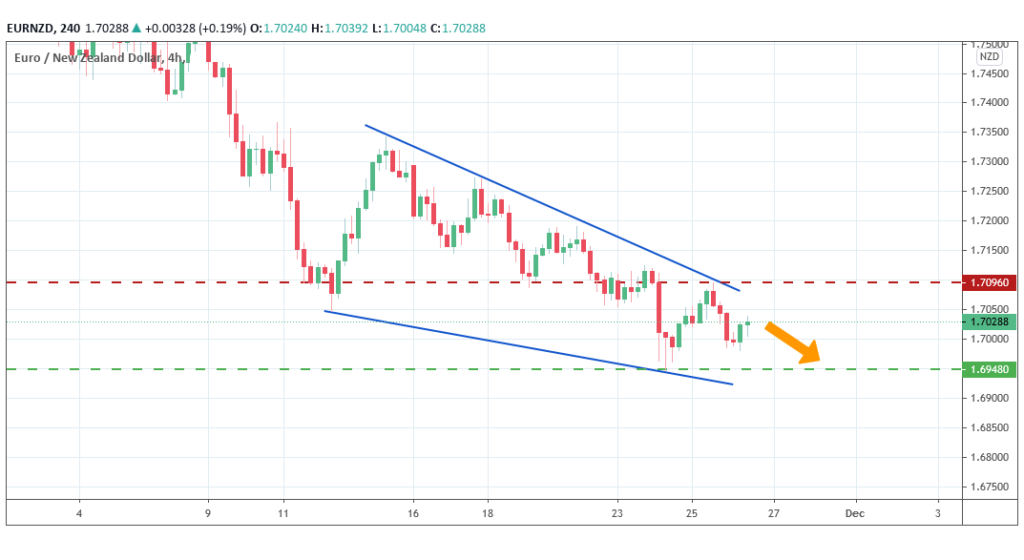 EURNZD คู่นี้เป็น pattern แบบ Falling Wedge โดยรูปแบบราคาจาก Time frame 4 ชั่วโมง