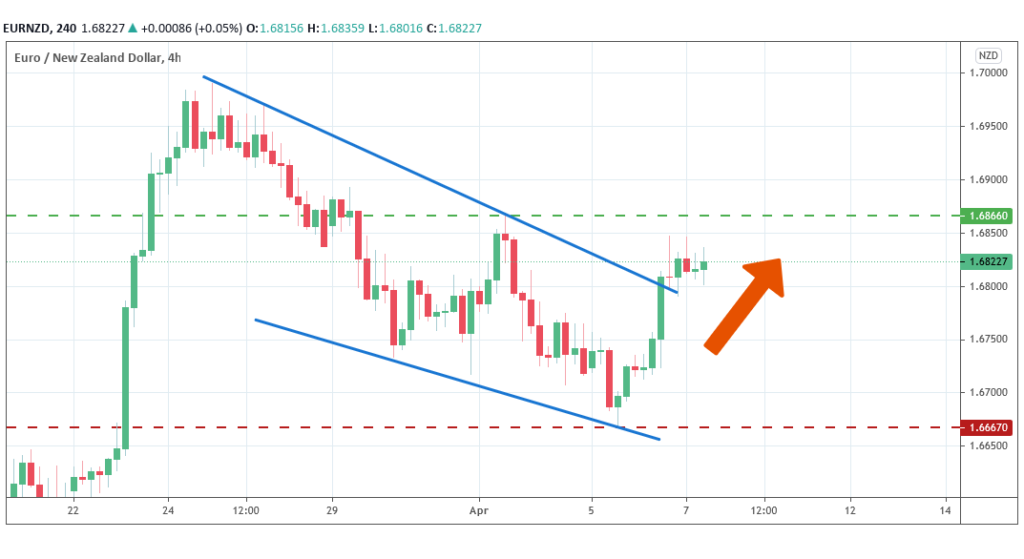 EURNZD คู่นี้เป็น pattern แบบ Channel down โดยรูปแบบราคาจาก Time frame 4 ชั่วโมง