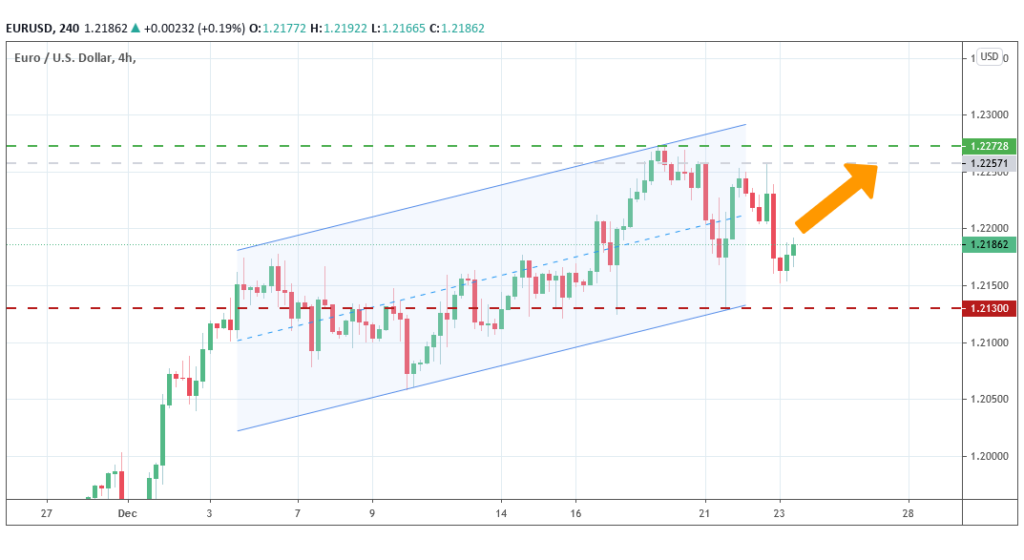 EURUSD คู่นี้เป็น pattern แบบ Channel up โดยรูปแบบราคาจาก Time frame 4 ชั่วโมงในระยะสั้นมีแนวโน้มที่ราคาจะขึ้นไปทดสอบที่บริเวณแนวต้านระดับ 1.2273มีจุดทำกำไรที่บริเวณใกล้ๆแนวต้านระดับ 1.2273 และจุดตัดขาดทุนควรต่ำกว่าแนวรับที่บริเวณระดับ 1.2130