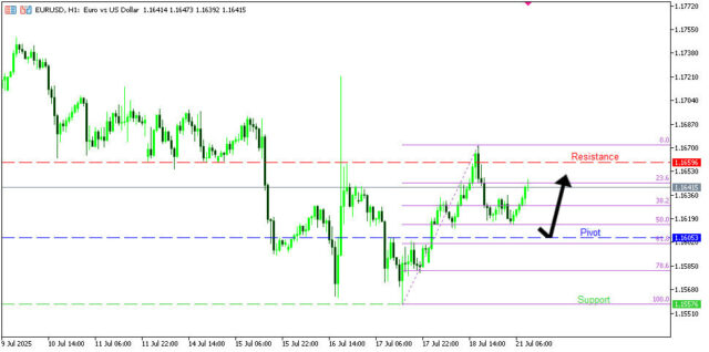 EURUSD H1 | มีแนวโน้มกลับตัวขึ้น By Dev TIC - July 21, 2025 266 0 Facebook Twitter Pinterest WhatsApp Email LINE วิเคราะห์ EURUSD บนกราฟ H1 มีแนวโน้มกลับตัวขึ้น หากราคาดีดจากแนวรับที่ 1.1605 ซึ่งสอดคล้องกับ Fibonacci 61.8% อาจขึ้นสู่แนวต้านที่ 1.1659 แต่หากหลุดแนวรับ อาจอ่อนตัวลงสู่แนวรับถัดไปที่ 1.1557