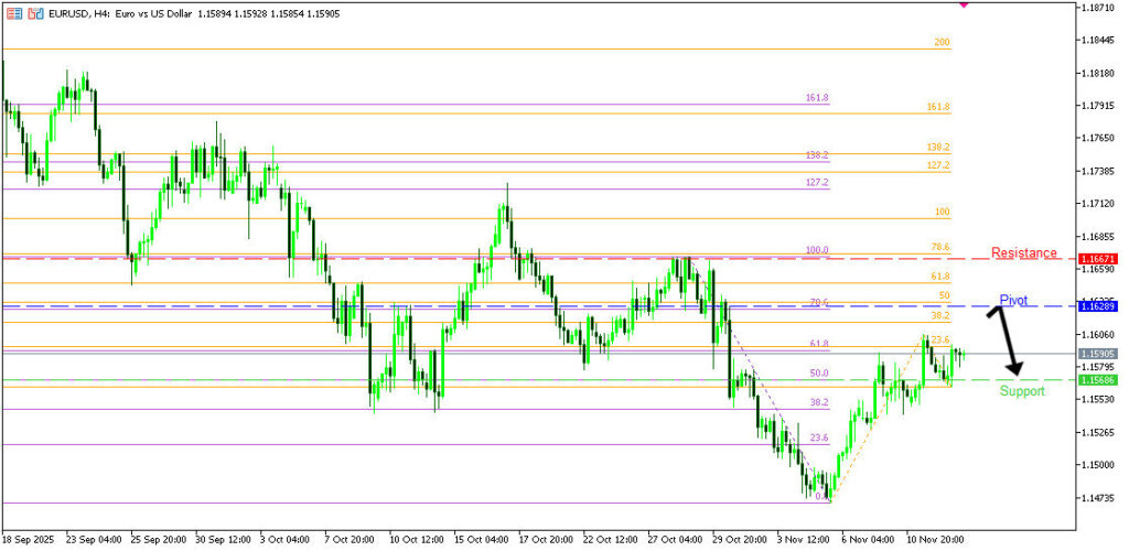 วิเคราะห์ EURUSD บนกราฟ H4 มีแนวโน้มกลับตัวลงจากแนวต้านบริเวณ 1.1628 ซึ่งเป็นแนวต้านจากการย่อตัวและสอดคล้องกับระดับ Fibonacci 78.6% และ 50% หากราคากลับตัว มีโอกาสอ่อนตัวลงสู่แนวรับแรกที่ 1.1568 แต่หากราคาทะลุเหนือ 1.1628 ขึ้นไปได้ อาจปรับขึ้นต่อสู่แนวต้านถัดไปที่ 1.1667