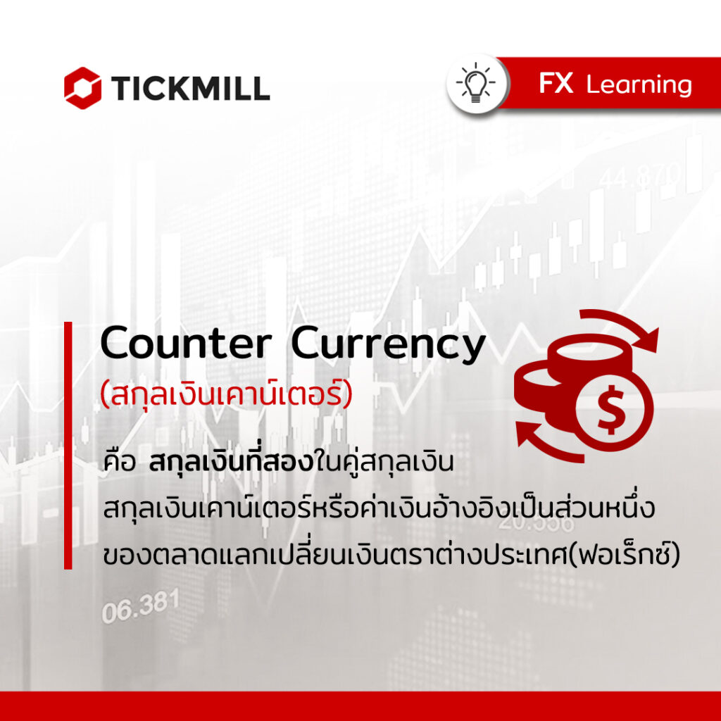 Counter Currency (สกุลเงินเคาน์เตอร์) คือ สกุลเงินที่สองในคู่สกุลเงิน สกุลเงินเคาน์เตอร์หรือค่าเงินอ้างอิงนี้เป็นส่วนหนึ่งของตลาดแลกเปลี่ยนเงินตราต่างประเทศ (ฟอเร็กซ์)
