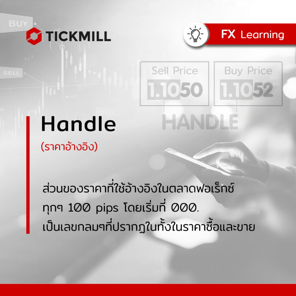 FX Learning – Handle Webmaster 3 years ago Handle (ราคาอ้างอิง)ส่วนของราคาที่ใช้อ้างอิงในตลาดฟอเร็กซ์ ทุกๆ 100 pips โดยเป็นเลขเริ่มที่ 000. เป็นเลขกลมๆที่ปรากฏในทั้งในราคาซื้อและขาย