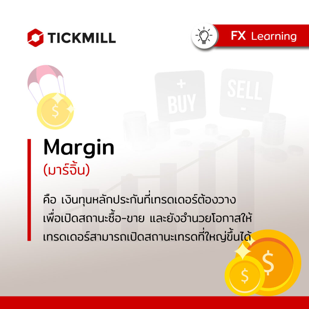 Margin- มาร์จิ้น คือเงินทุนหลักประกันที่เทรดเดอร์ต้องวางเพื่อเปิดสถานะซื้อ-ขาย และยังอำนวยโอกาสให้เทรดเดอร์เปิดสถานะเทรดที่ใหญ่ขึ้นได้