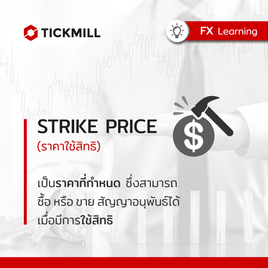 FX Learning – STRIKE PRICE MKT 3 years ago STRIKE PRICE (ราคาใช้สิทธิ)เป็นราคาที่กำหนด ซึ่งสามารถซื้อหรือขายสัญญาอนุพันธ์ได้เมื่อมีการใช้สิทธิ