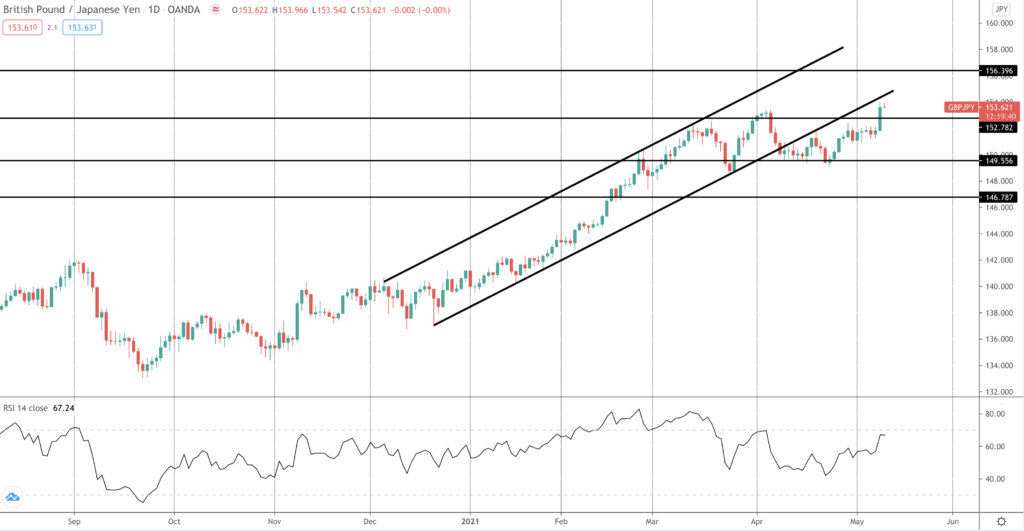 สัปดาห์นี้ GBP กลับมาแข็งค่าเมื่อเปรียบเทียบกับหลายสกุลเงิน เนื่องจากเมื่อวานรัฐบาลอังกฤษได้ปรับลดการเฝ้าระวัง COVID-19 จากระดับ 4 ลงมาเหลือ 3 ซึ่งถือว่าพ้นจากระดับวิกฤต โดยจะผ่อนคลายมาตรการ Lockdown ตั้งแต่วันจันทร์หน้าเป็นต้นไป (17 พ.ค.64) และธุรกิจต่างๆ ในภาคบริการ เช่น ร้านอาหาร/เครื่องดื่ม จะได้รับอนุญาตให้กลับมาเปิดบริการแบบภายในอาคารอีกครั้ง แม้จะยังต้องปฏิบัติตามมาตรการรักษาระยะห่างทางสังคม รวมทั้งต้องสวมหน้ากากอนามัย