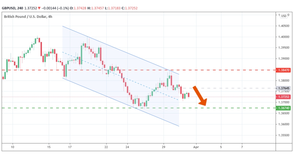 GBPUSD คู่นี้เป็น pattern แบบ Channel down โดยรูปแบบราคาจาก Time frame 4 ชั่วโมง