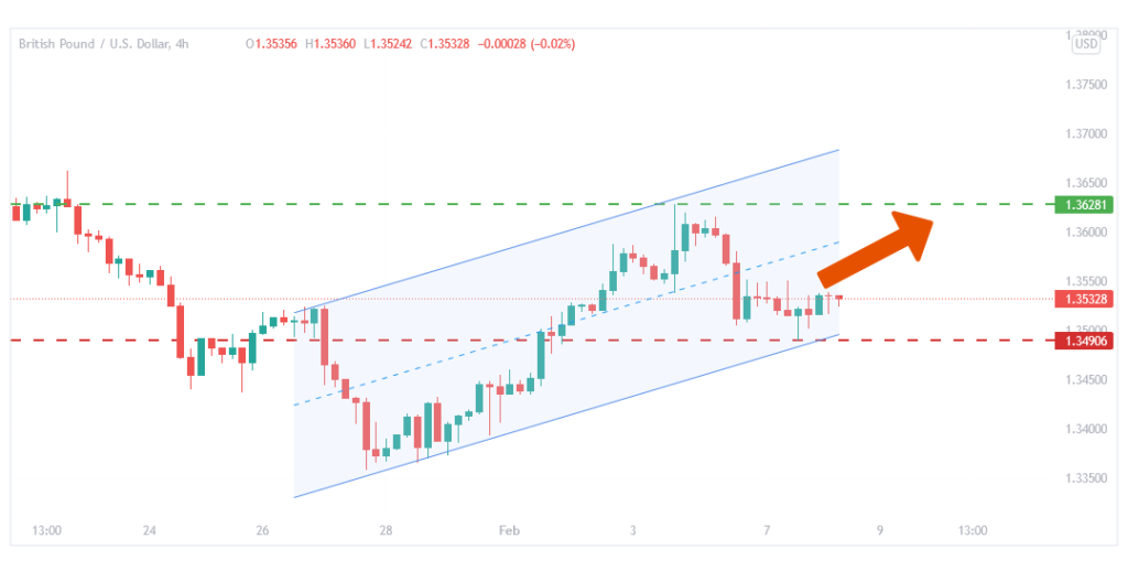 GBPUSD คู่นี้เป็น pattern แบบ Channel Up โดยรูปแบบราคาจาก Time frame 4 ชั่วโมง
