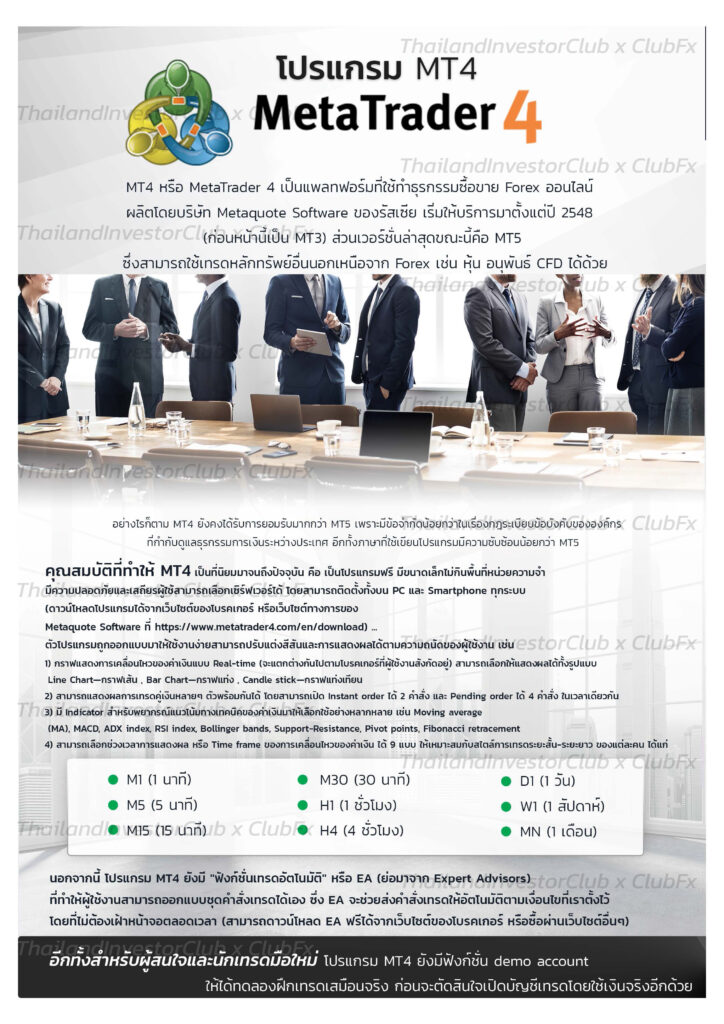 เรียนรู้ระบบ MT4 เพิ่มเติมที่ Ebook ClubFX ภาษาไทยเพื่อคนไทย ให้ข้อมูลและความรู้เบื้องต้นในการเทรด Forex อ่านเพิ่มเติม ดาวน์โหลดได้ที่นี่ http://clubfx.com/ebook/e-bookTH-TICxClubfx.pdf