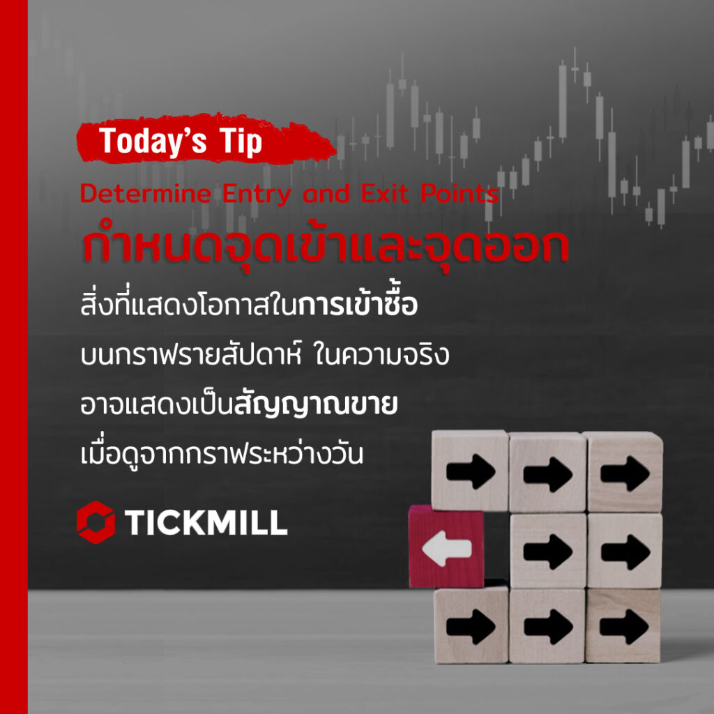 Today’s Tip -Determine Entry and Exit Points MKT 4 years ago สิ่งที่แสดงโอกาสในการเข้าซื้อบนกราฟรายสัปดาห์ ในความจริงอาจแสดงเป็นสัญญาณขายเมื่อดูจากกราฟระหว่างวัน
