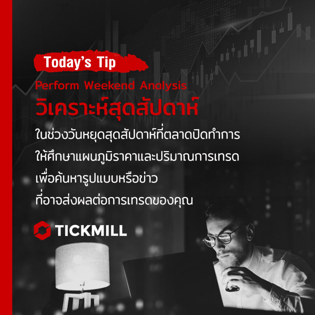 ในช่วงวันหยุดสุดสัปดาห์ที่ตลาดปิดทำการ ให้ศึกษาแผนภูมิราคาและปริมาณการเทรดรายสัปดาห์