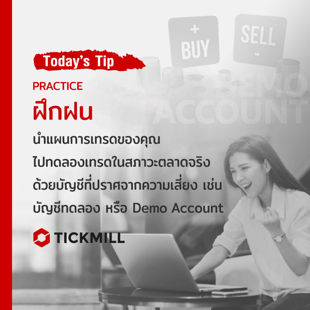 Today’s Tip – PRACTICE MKT 4 years ago นำแผนการเทรดของคุณ ไปทดลองเทรดในสภาวะตลาดจริง ด้วยบัญชีที่ปราศจากความเสี่ยง เช่น บัญชีทดลอง หรือ Demo Account