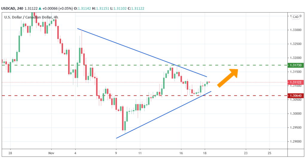 USDCAD formed the Triangle pattern with time frame 4 Hours.