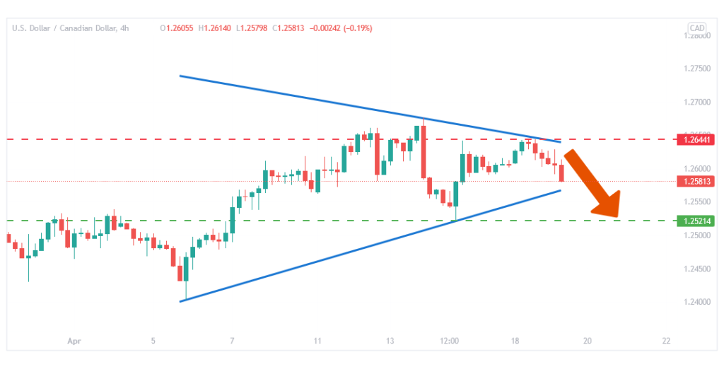 USDCAD คู่นี้เป็น pattern แบบ Triangle โดยรูปแบบราคาจาก Time frame 4 ชั่วโมง