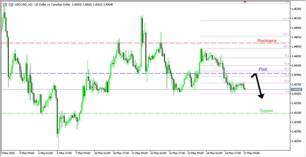 วิเคราะห์ USDCAD กรอบเวลา H1 กำลังทดสอบแนวต้าน 1.4398 (50% Fibonacci) หากกลับตัว มีโอกาสร่วงสู่แนวรับ 1.4313 แต่หากทะลุขึ้น อาจไปต่อที่ 1.4462