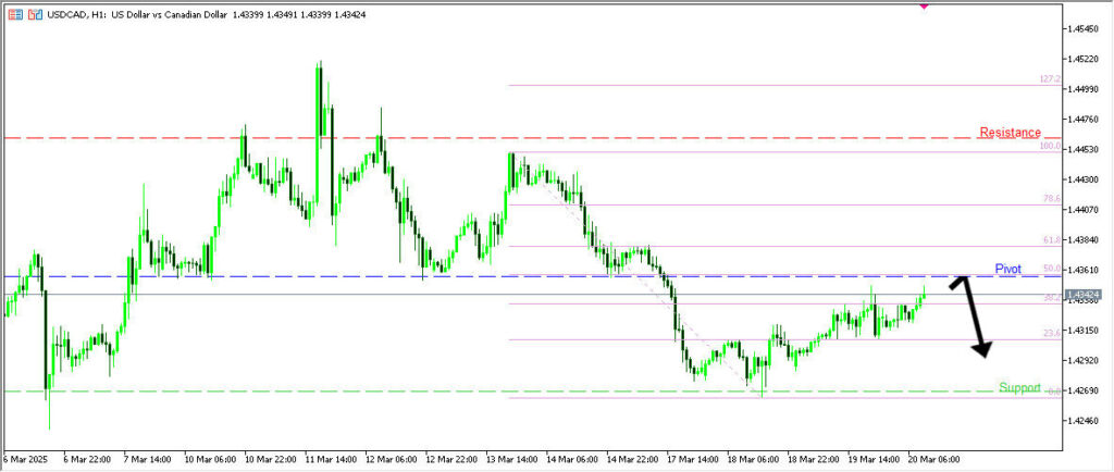 วิเคราะห์ USDCAD กรอบเวลา H1 มีแนวโน้มขาลง หากราคากลับตัวจากแนวต้าน 1.4356 (50% Fibonacci) อาจร่วงสู่แนวรับ 1.4268 แต่หากทะลุขึ้น อาจพุ่งต่อไปที่ 1.4461