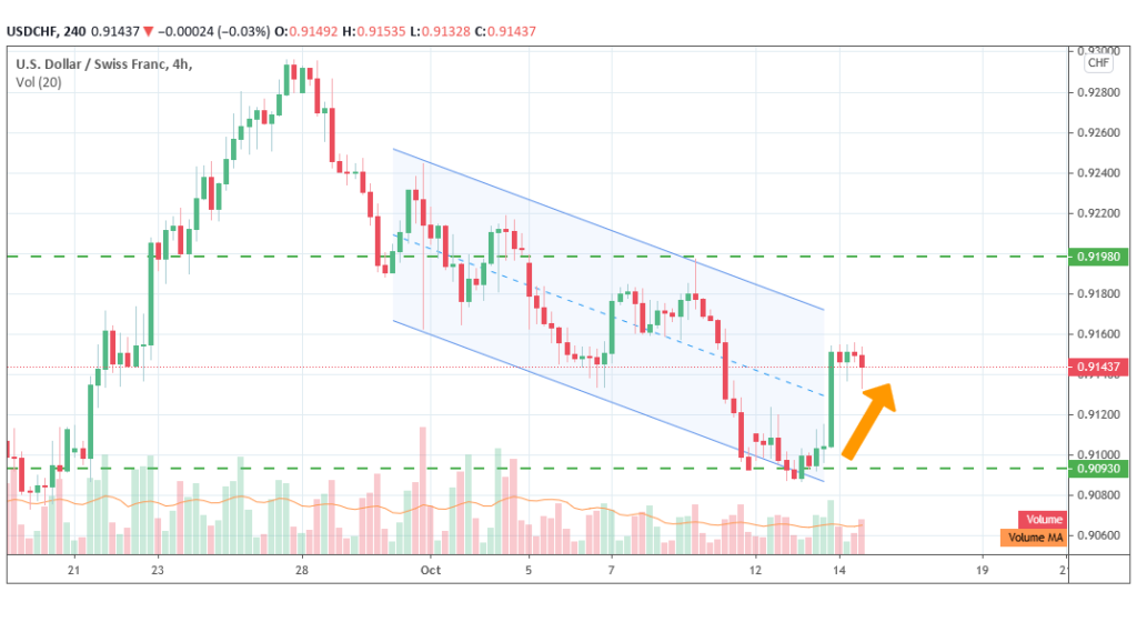 USDCHF formed the channel down pattern with timeframe 4 Hours.