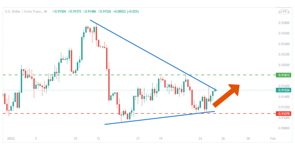 USDCHF คู่นี้เป็น pattern แบบ Triangle
