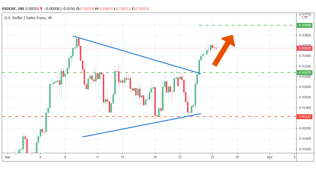 USDCHF formed the Triangle pattern with time- frame 4 Hours.