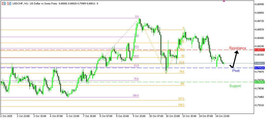 วิเคราะห์ USDCHF บนกราฟ H1 มีแนวโน้มดีดตัวขึ้นจากแนวรับสำคัญ