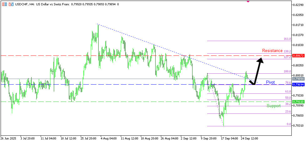 แต่ถ้าหลุดแนวรับ Pivot นี้ อาจร่วงลงต่อถึงแนวรับถัดไปที่ 0.7911 สถานการณ์ชี้ว่าเป็นจุดชี้ขาดระหว่างการดีดตัวขึ้นหรือหลุดลงต่อ