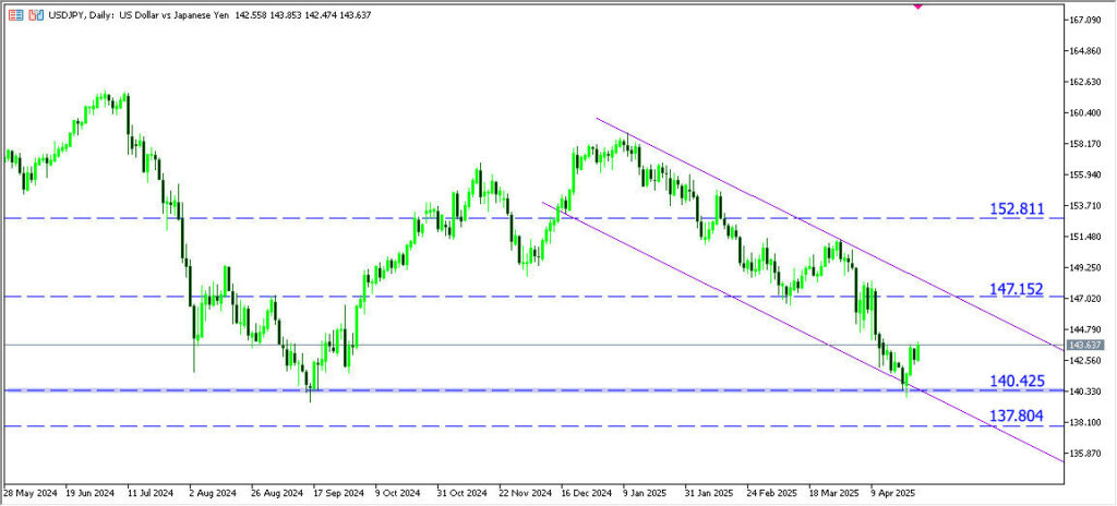 USDJPY กำลังทดสอบแนวรับสำคัญบริเวณ 140.40 หลังดีดขึ้นแรงแต่กลับตัวลงจากแรงขายดอลลาร์อีกครั้ง ท่ามกลางความไม่แน่นอนทางนโยบายจากทรัมป์ โดยก่อนหน้านี้ตลาดรับข่าวบวกจากท่าทีผ่อนคลายเรื่องภาษีจีนและการสนับสนุน Powell แต่ล่าสุดทรัมป์กลับวิจารณ์ Fed อีกครั้งและยังไม่มีความชัดเจนเรื่องลดภาษี ทำให้ความเสี่ยงขาลงยังมีอยู่ หากหลุดแนวรับนี้ อาจร่วงต่อถึง 137.80 แต่หากยืนได้ มีโอกาสดีดกลับสู่ 147.15.