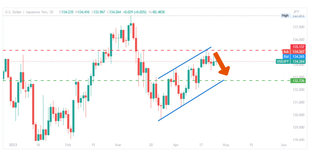 ในระยะสั้นมีแนวโน้มที่ราคาจะลงไปทดสอบที่บริเวณแนวรับระดับ 132.7260